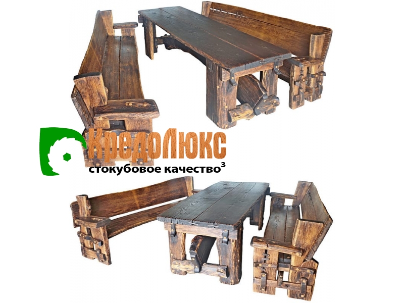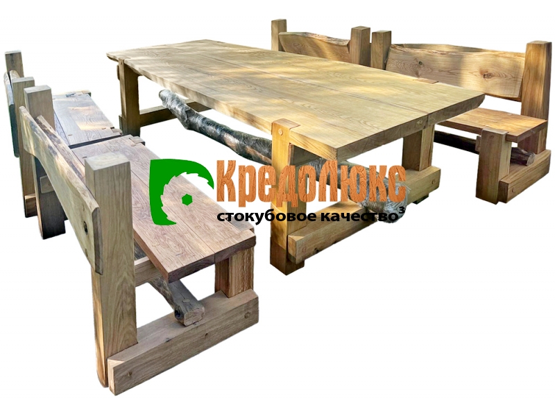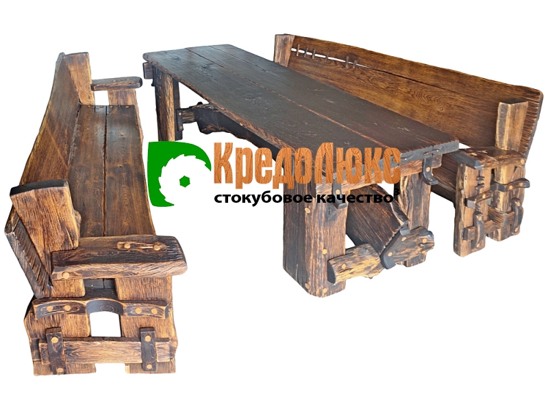 Дубовые наборы мебели для дома и сада: мы изготавливаем уникальную, эксклюзивную мебель из массива дуба. Набор дубовой мебели - это стол со скамьями, или со стульями, или с табуретами, с элементами ковки и без них, по вашему желанию.